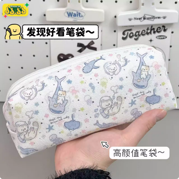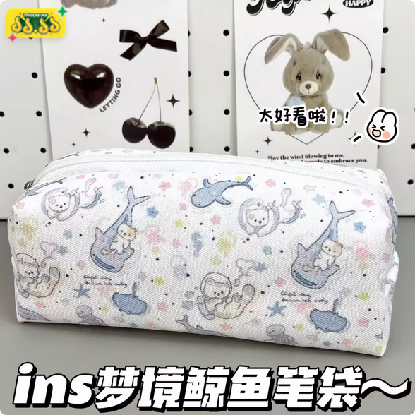 Home Stationery Dream Whale Pencil Bag Ins Style High-Looking Student Stationery Bag Pen Cute Storage Bag Cosmetic Bag Stationery Box