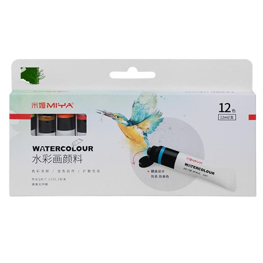 Product Details of MIYA Watercolor Tube Set (12ML) – 12 Colors-12ml Tubes (12 Colors)-Bright colours,High hiding power-Quickly drying, Easy to Wash-Good dispersion to mixing colours.-Creative design packaging.-Easy to store and carry.-Non-toxic, Solvent free.