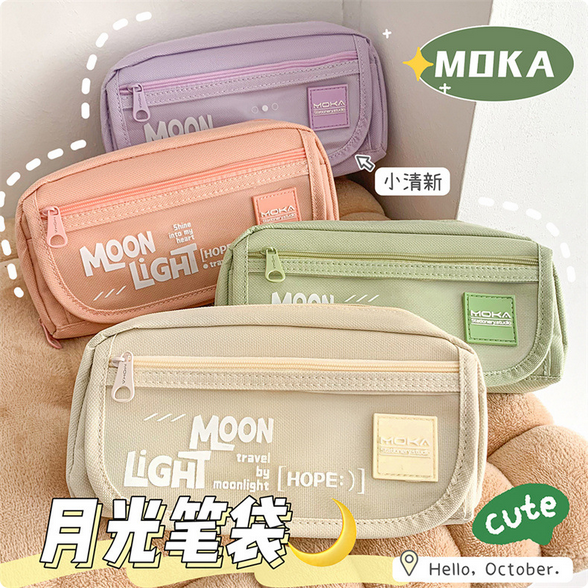 MOKA Large Capacity pencil case for students simple ins style Japanese style high-looking girl Primary School student simple canvas stationery – White