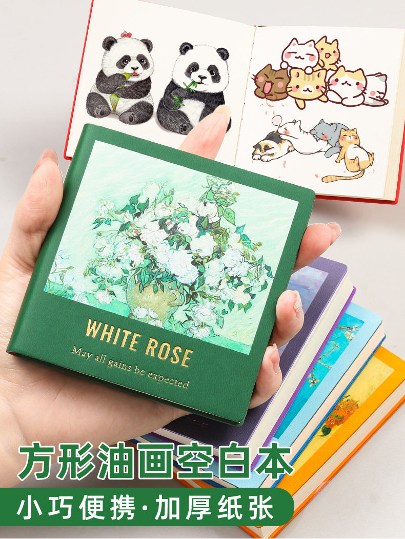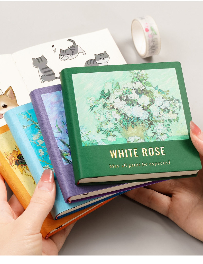 - Cover Color: Oil painting small book-white rose starry sky