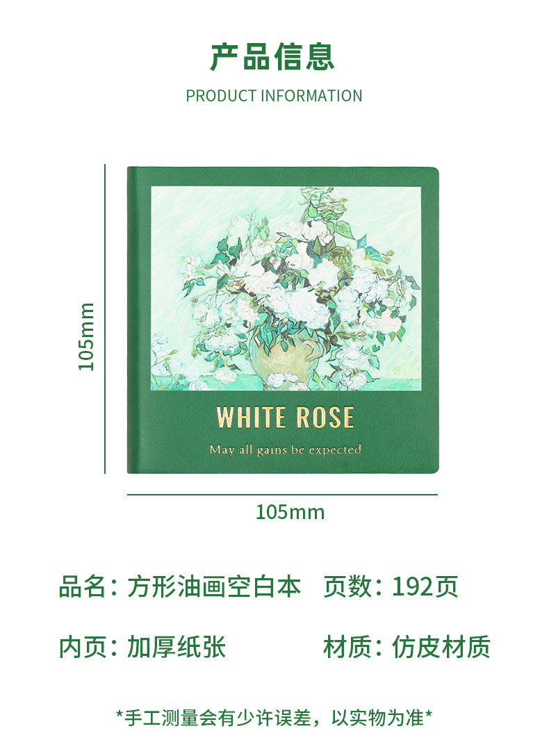 - Cover Color: Square oil painting small book-dark green white rose