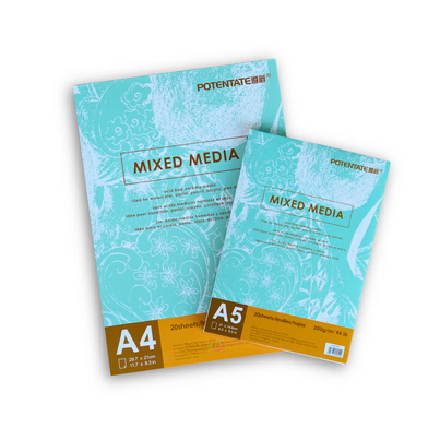 - Mixed Media Pad – glue bound Page : 20 sheets 200gsm 94lb sizes – A5